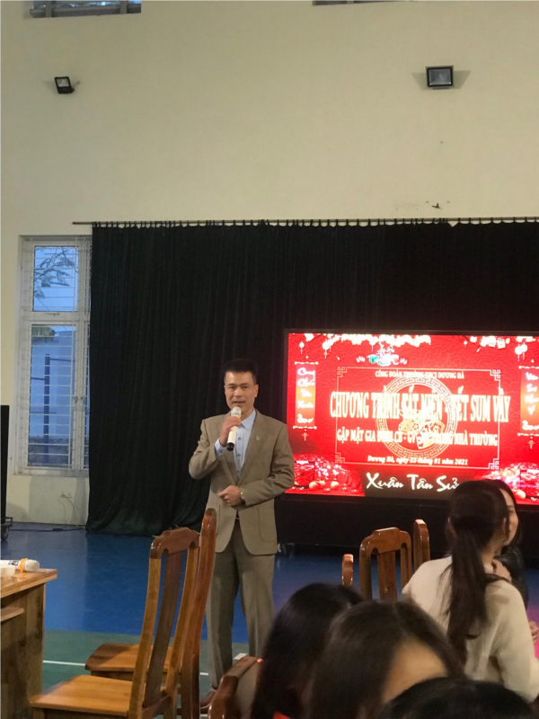 Thay mặt cho các anh chị em dâu, rể của nhà trường, anh Nguyễn Hoàng Dương - phu quân của cô giáo Trần Thị Huyền đã lên có lời cảm ơn tới Chi bộ - Ban giám hiệu, công đoàn đã tổ chức cuộc giao lưu gặp mặt “Tết sum vầy” này.