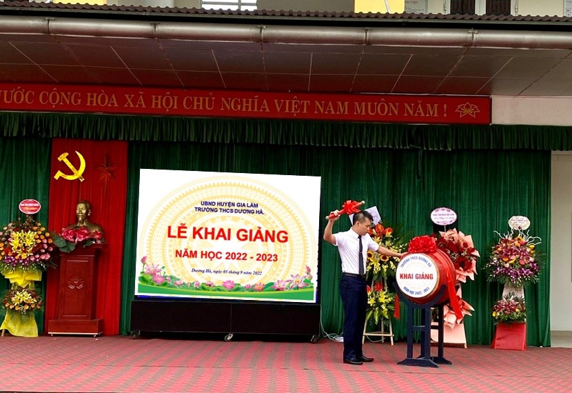 Tại lễ khai giảng trường THCS Dương Hà, thầy Lê Hồng Giang – Hiệu trưởng nhà trường đọc diễn văn chào mừng năm học mới, đồng chí Nguyễn Thị Bích Thủy – Phó hiệu trưởng nhà trường cũng lên đọc Thư của Chủ tịch nước Nguyễn Xuân Phúc động viên, nhắn nhủ đến các thầy giáo, cô giáo, cán bộ quản lý, người lao động ngành Giáo dục, các bậc phụ huynh, học sinh, sinh viên trên cả nước. Năm học qua, dịch COVID-19 diễn biến phức tạp, học sinh phải học trực tuyến trong thời gian khá dài nhưng với sự nỗ lực, quyết tâm của giáo viên và học sinh trường THCS Dương Hà đã hoàn thành năm học tốt đẹp, đảm bảo an toàn sức khỏe cho học sinh. Nhà trường chú trọng xây dựng văn hóa học đường ngay từ những ngày đầu năm học; phối hợp tốt với phụ huynh để tạo sự đồng thuận, chia sẻ, hỗ trợ nhà trường thực hiện tốt nhiệm vụ năm học. Để năm học 2022 - 2023 đạt hiệu quả cao, Nhà trường sẽ tiếp tục xây dựng và phát triển đội ngũ nhà giáo bảo đảm đủ về số lượng, đồng bộ về cơ cấu, có phẩm chất đạo đức tốt, có chuyên môn, nghiệp vụ vững vàng; triển khai hiệu quả lộ trình nâng trình độ chuẩn được đào tạo của giáo viên.