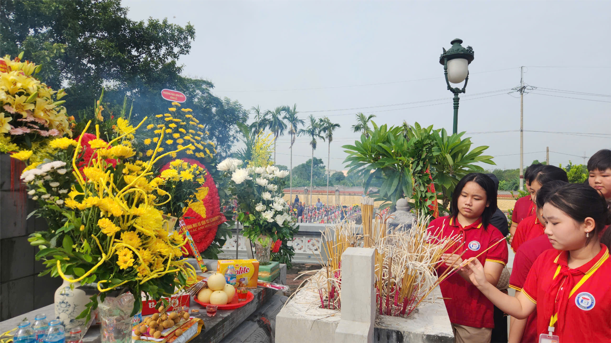 Mở đầu chuỗi hoạt động là lễ viếng và thắp hương tưởng niệm tại bia ghi danh các anh hùng liệt sĩ tại Thôn Trung – xã Phù Đổng. Đây là dịp để các em học sinh bày tỏ lòng biết ơn sâu sắc đối với những người đã hy sinh vì độc lập, tự do của Tổ quốc. Trong không khí trang nghiêm, đoàn đã dâng hương, dâng hoa và dành phút mặc niệm tưởng nhớ công lao to lớn của các anh hùng liệt sĩ.