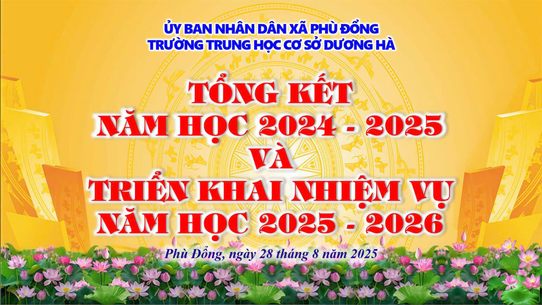 Sáng ngày 28 tháng 8 năm 2025, trường THCS Dương Hà đã long trọng tổ chức Lễ Tổng kết năm học 2024 – 2025 và triển khai nhiệm vụ trọng tâm cho năm học mới 2025 – 2026. Buổi lễ có sự tham dự đầy đủ của Ban giám hiệu, toàn thể thầy cô giáo, cán bộ nhân viên nhà trường.